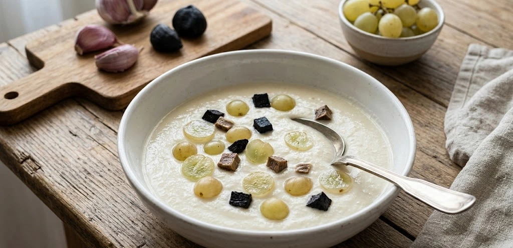 El ajoblanco es una de las elaboraciones más antiguas y representativas del recetario del sur de España. Mucho antes de la popularización del gazpacho con tomate, esta sopa fría a base de almendras, ajo, pan y aceite ya formaba parte de la cocina popular. Hoy, la receta ajoblanco sigue siendo un emblema de la gastronomía por su frescura, sencillez y sabor.